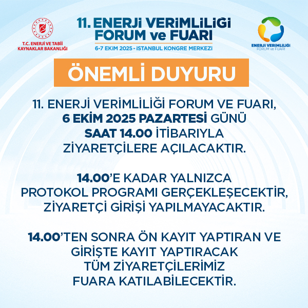 11. Enerji Verimliliği Forumu ve Fuarı, 6-7 Ekim 2025 tarihlerinde, İstanbul Kongre Merkezinde gerçekleşecektir. Enerji verimliliği alanında Türkiye'nin en büyük ve en önemli etkinliklerinden biri olan EVF, Türkiye'de enerji verimliliği kanunu yürürlüğe girdikten sonra ilk kez 2009 yılında düzenlenmiştir.