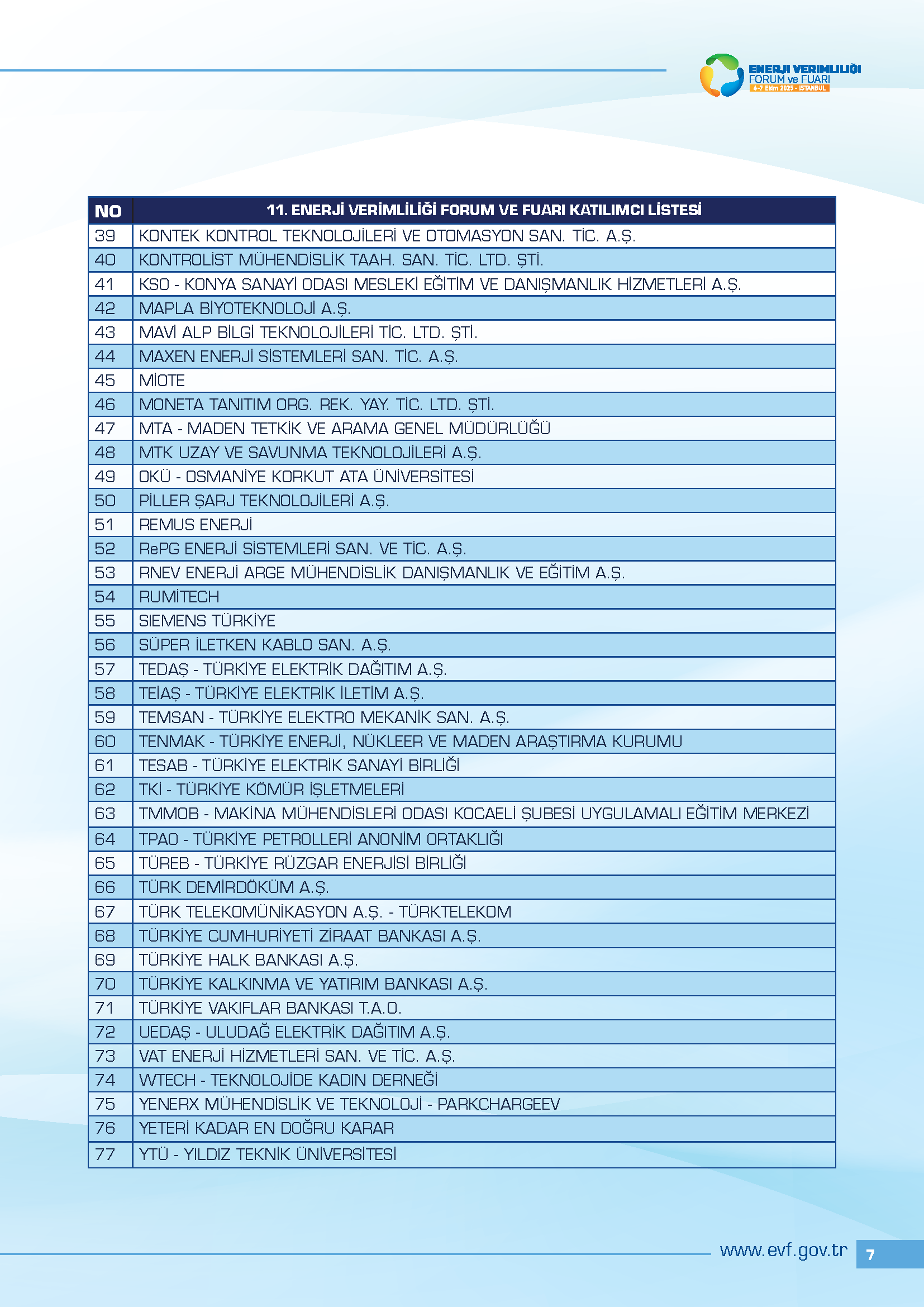 Enerji ve Tabii Kaynaklar Bakanlığı tarafından düzenlenen 11. Enerji Verimliliği Forum ve Fuarı, 6-7 Ekim 2025 tarihlerinde İstanbul Kongre Merkezi’nde başarıyla gerçekleştirilmiştir.